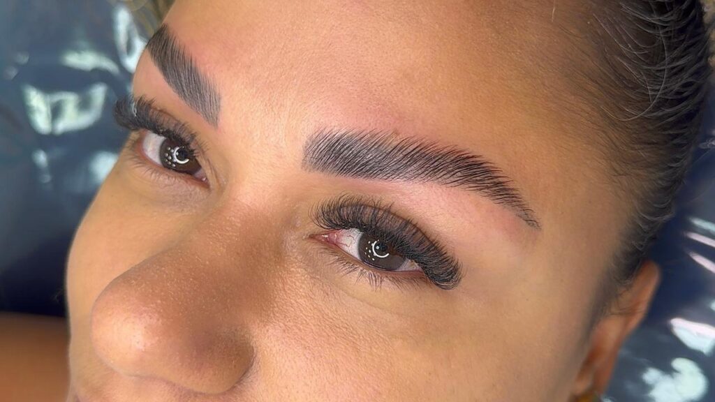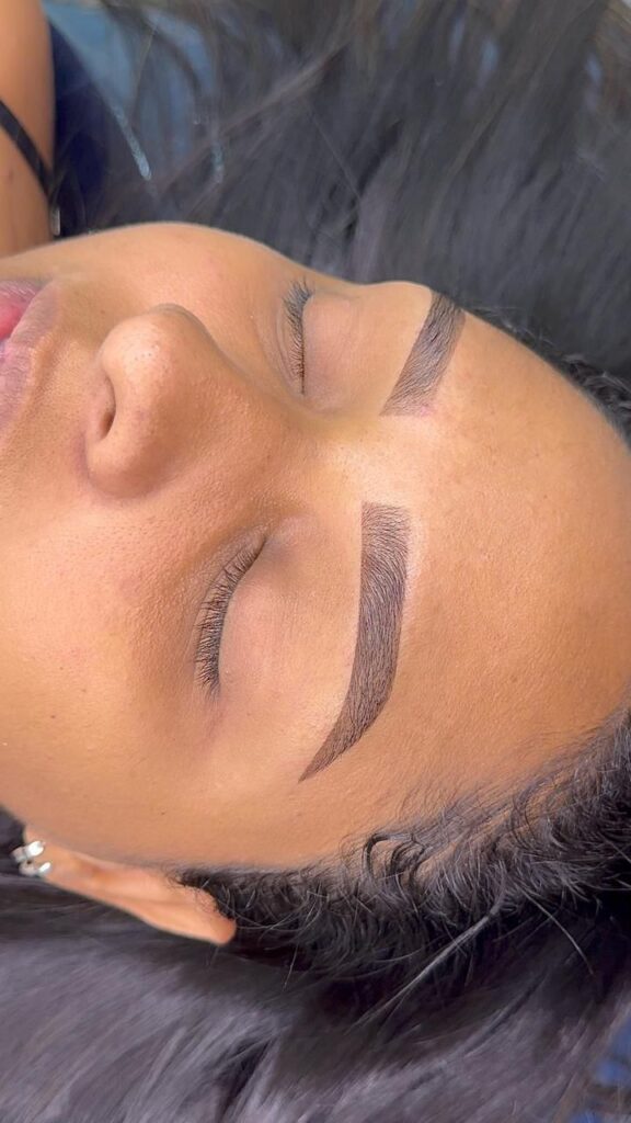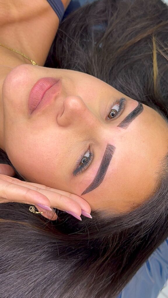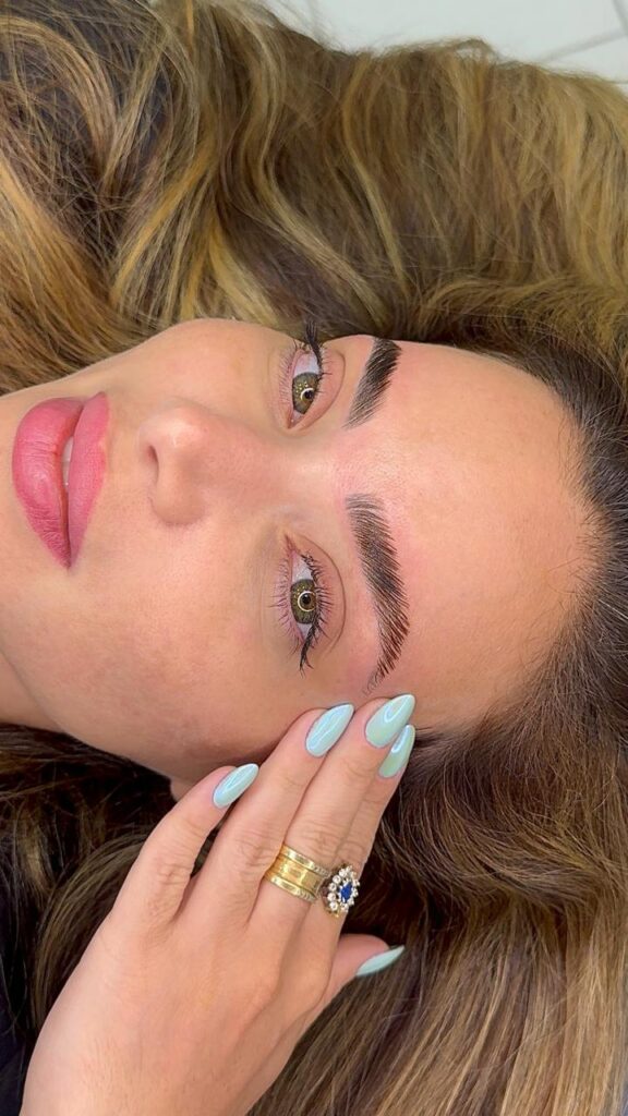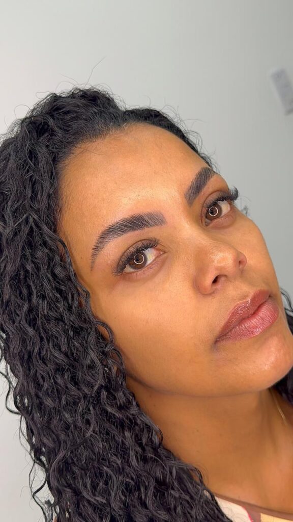 Sobrancelhas bem definidas que harmonizam seu rosto e destacam sua beleza.